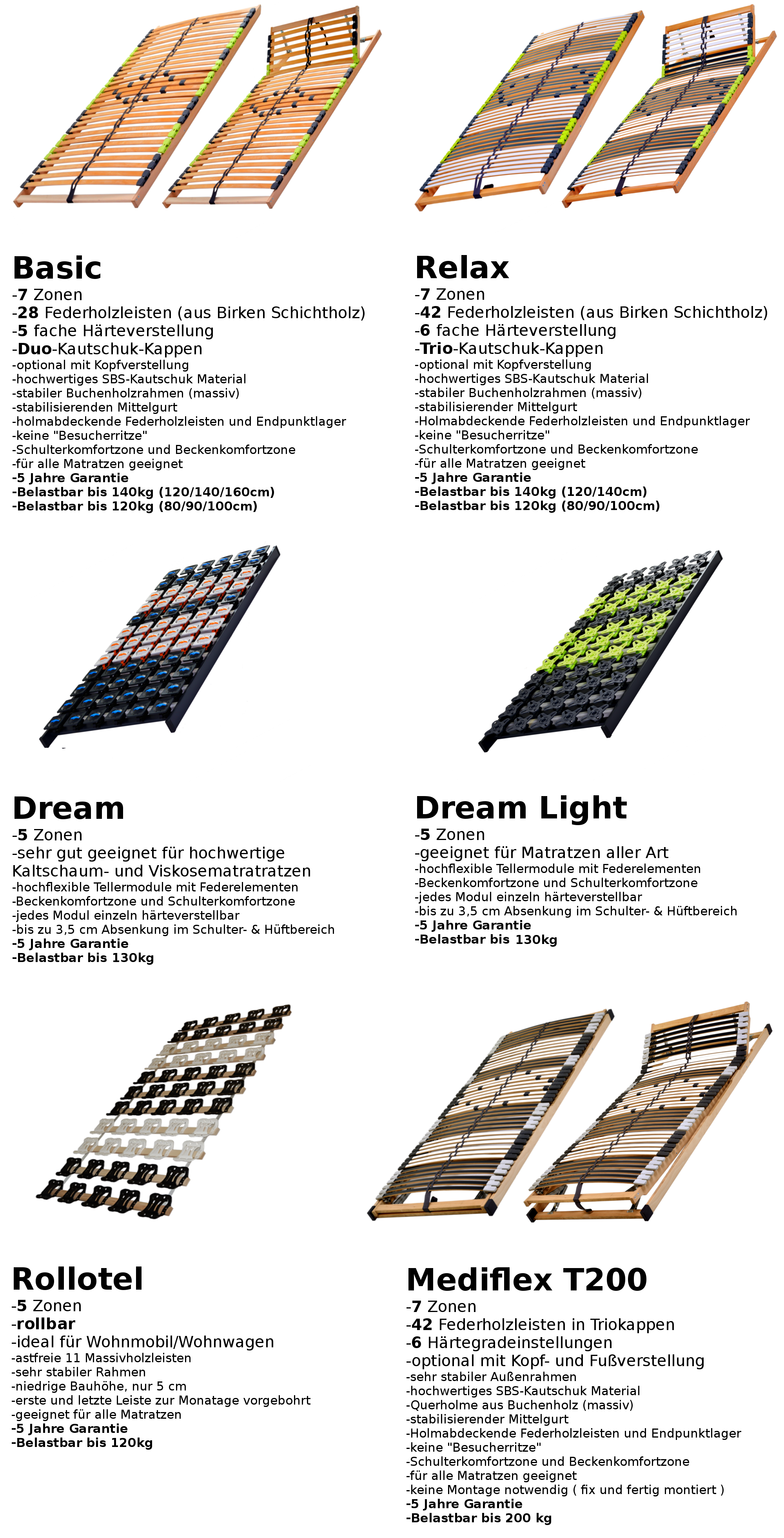 Gelmatratzen: Für diejenigen, die Gelmatratzen bevorzugen, bietet unser Lattenrost eine stabile und unterstützende Plattform, um die Vorzüge dieser Matratzenart zu maximieren.